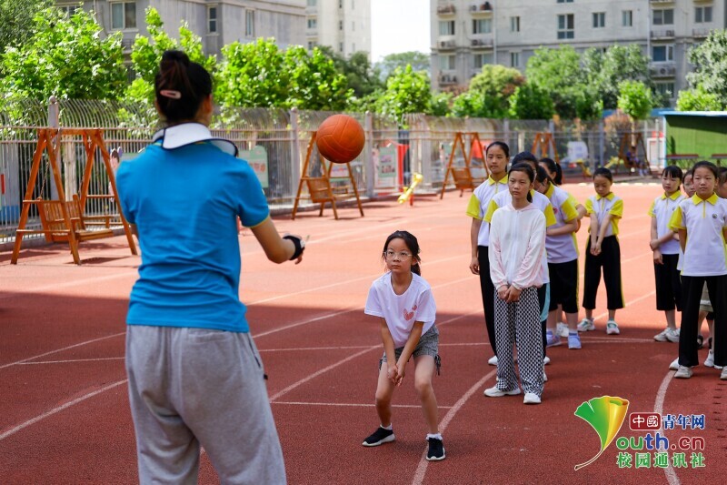 图为实践队员李淳进行室外排球教学。中国青年网通讯员 田益欣 供图