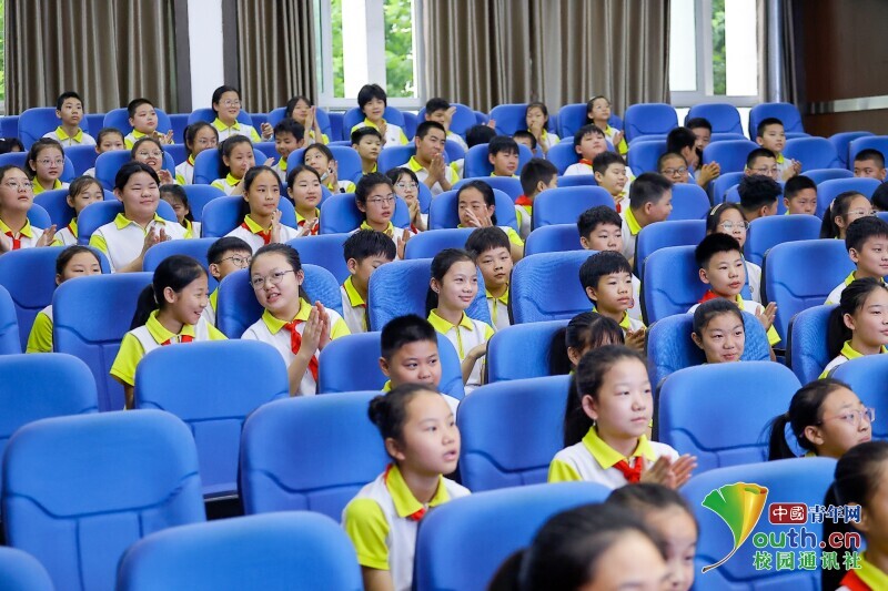 图为孩子们认真聆听实践队队员介绍体育课程开设情况。中国青年网通讯员 田益欣 供图