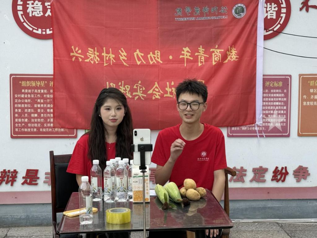 在这个炎热的夏日,洛师学子以挺膺担当之姿投身于丰富多彩的暑期实践活动中,带着满满的收获和成长,自豪地展示实践成果,现在就随团团一起来看看吧!电子商务学院“数商青年,助力乡村振兴”实践队,怀揣着青春的热情与智慧,深入洛阳栾川县杨树底村,以直播这一新兴媒介为桥梁,搭建起乡村特产与广阔市场的连接之路。他们化身为乡村振兴的生动代言,通过镜头展示着杨树底村的兰花、玉米糁、土豆等农产品,不仅让外界感受到了乡村的淳朴与魅力,更带动了当地特色产品的热销,为村民拓宽了增收渠道,激活了乡村经济的一池春水。这场直播活动,不仅是青年学子社会实践的生动实践,更是电商赋能乡村振兴的鲜活例证。