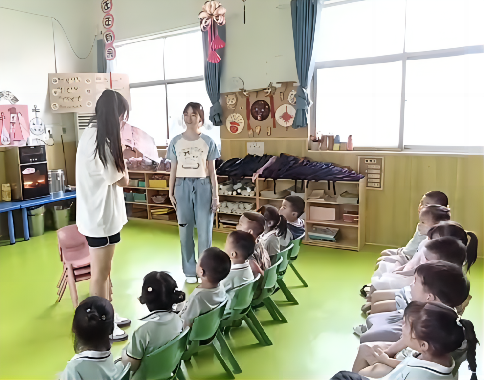 一些实践队员是第一次真正走进幼儿园,从见习到深度实践,与小朋友们朝夕相处,深入观察儿童、了解儿童,真正成为他们的教育者、合作者和引导者。实践队员不仅参与课程教学,更是全程投入到孩子们的日常生活中,晨间到放学的接送,早午餐的悉心照护,课间操的热情陪伴等等,用心同行,用爱启迪。