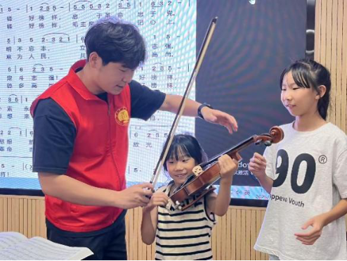 艺术课堂更是精彩纷呈,实践队员们在东、西棘针社区开展电子琴、萨克斯、小提琴等乐器教学,为孩子们孕育出艺术的新芽。