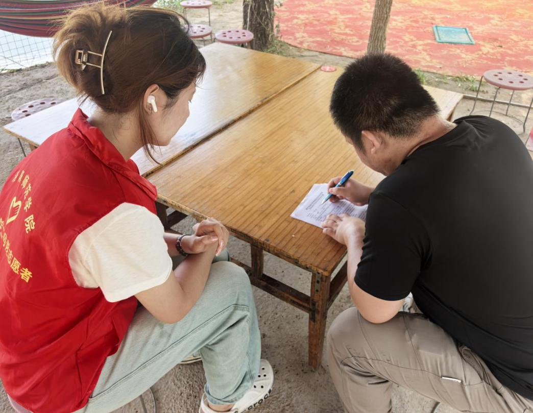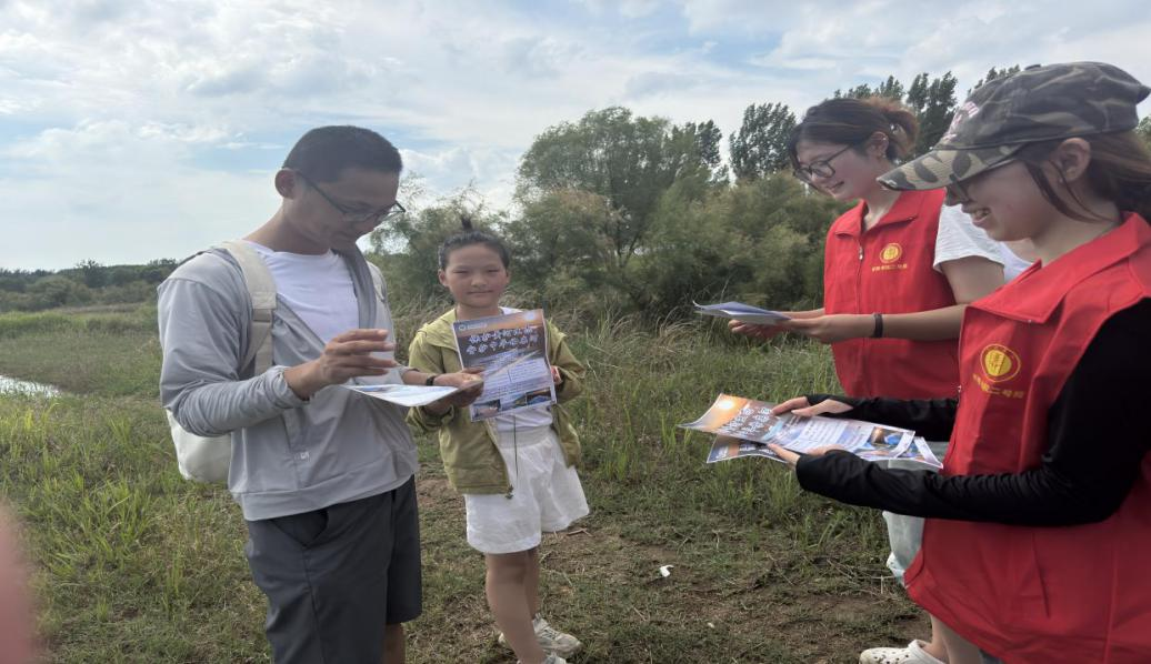 调研结束,队员们手持调查问卷与科普手册走进游客,以紫薇净化空气、杨树防风固沙为例,用通俗易懂的语言将“生态保护”转化为听得懂、记得住的知识。队员累计发放并有效回收生态认知调查问卷38份,同步收集建设性意见35条,让“植绿护绿”理念浸润人心。