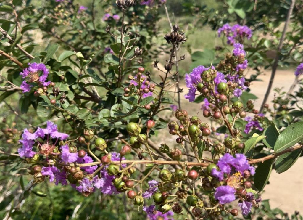 队员们穿梭于紫薇花丛与杨树林调研:用卷尺测量紫薇株高,观察叶片气孔分布并记录耐旱性;深入滩涂剖析杨树根系“固沙矩阵”,对比不同区域植株生长差异。每一组数据、每一页笔记,都凝聚着对黄河植物适应性与生态价值的深度探索,让书本中的理论知识在湿地“生根发芽”。