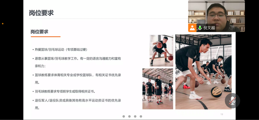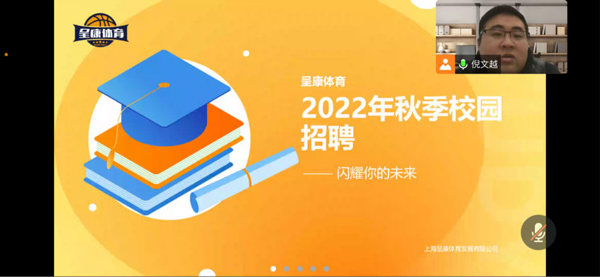 首先,上海呈康体育负责人以ppt放映的形式向入会同学了展示了企业简介、岗位介绍、培训晋升、薪酬福利等。此外,在负责人播放的企业宣传片中,还向同学们展示了呈康体育砥砺前行,始终践行着“帮助中国百万青少年注入运动基因”的初心愿景,为中国体育行业的发展与壮大贡献自己的一份力量,这无不吸引着参会同学。会议即将结束之际,企业负责人留下了详细的联系方式以供同学们投递简历。