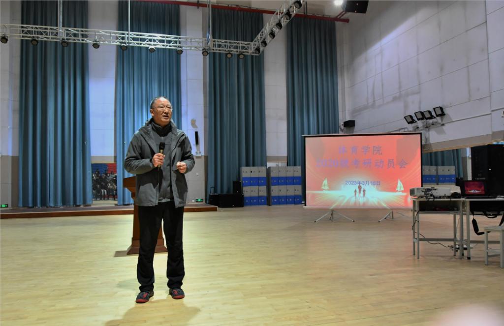 为提高我院2020级学生考研热情,充分调动学生考研积极性,帮助学生认清当前考研新形势,树立考研自信心,明确考研目标,营造良好的考研氛围。3月16日下午,体育学院在演播厅召开2020级学生考研动员大会。体育学院党委书记尚玉卿、院长董顺波、党委副书记翟强、副院长赵红波、副院长闫树人出席动员会,院长董顺波代表体育学院全体领导为学生做考试动员,2022级全体班主任及辅导员、2022级全体学生参加会议。党委副书记翟强主持会议。