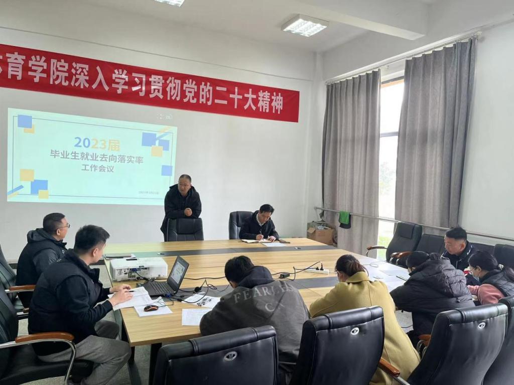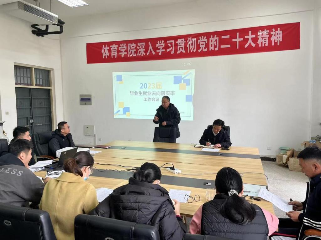 为持续推进就业工作,3月22日上午,我院于B109会议室召开2023届毕业生去向就业落实率工作会议,党委书记尚玉卿、院长董顺波、党委副书记翟强及毕业班班主任、辅导员参会,会议由体育学院就业办主任陶金主持。