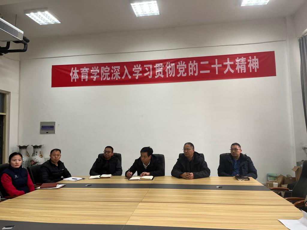 为进一步提高体育学院教师队伍的教学能力和学生管理能力,解决学生们在学习、上课、生活中的问题,2023年3月23日下午三点,体育学院组织全体理论课教师、全体辅导员、班主任老师在B109会议室开展教师座谈会。体育学院党委书记尚玉卿、院长董顺波、党委副书记翟强、副院长赵红波、副院长闫树人出席会议。