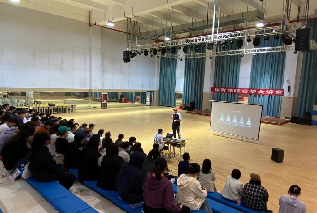 4月29日,由体育学院举办的启梦大讲堂讲座之“招聘新时代,就业更精彩”,在体育学院演播厅举办,讲座邀请北京怡海体育CEO黑波作为主讲人。