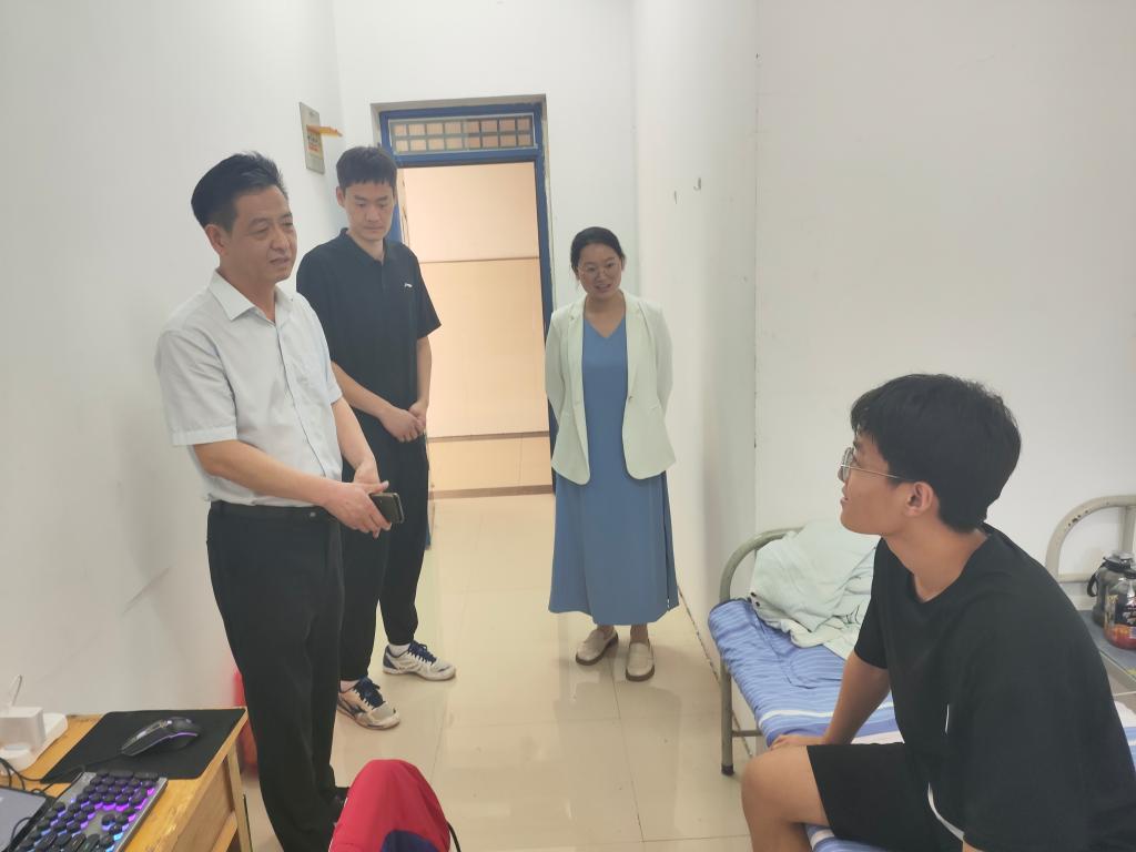 调研中,尚玉卿与同学们进行亲切交谈,了解学生的实际困难和真实需求,征求他们对教育教学、管理服务等方面的意见和建议,并与同学们认真分析问题、交流想法。他叮嘱同学们,要严格遵守学生宿舍管理各项规章制度,养成良好的卫生生活习惯,提高安全防护意识,积极营造整洁高雅、健康文明、安全有序的宿舍环境。同时,鼓励同学们要以习近平新时代中国特色社会主义思想主题教育为契机,树立远大目标,坚定理想信念,努力学习专业知识,实现人生价值。