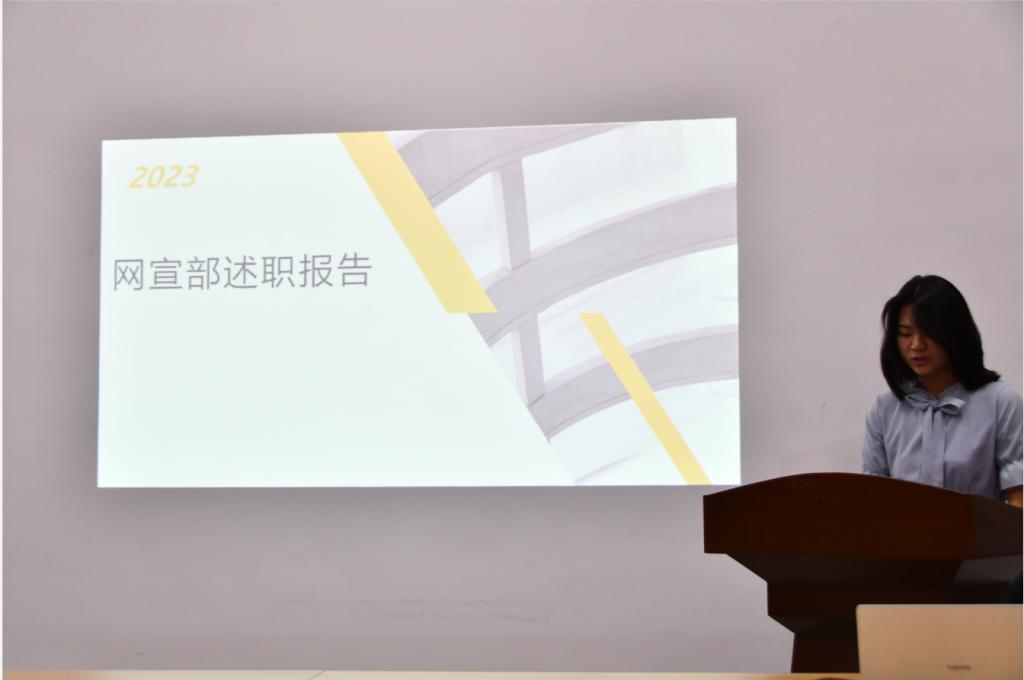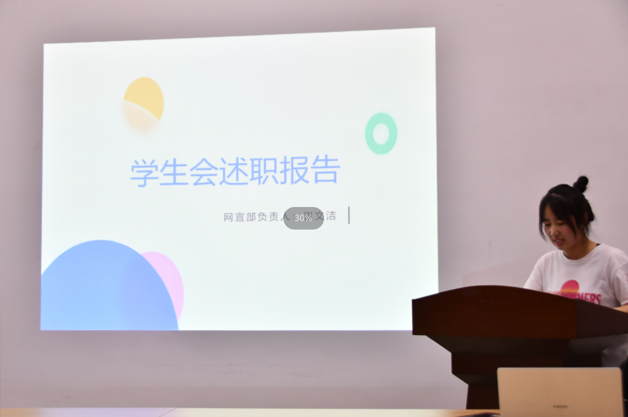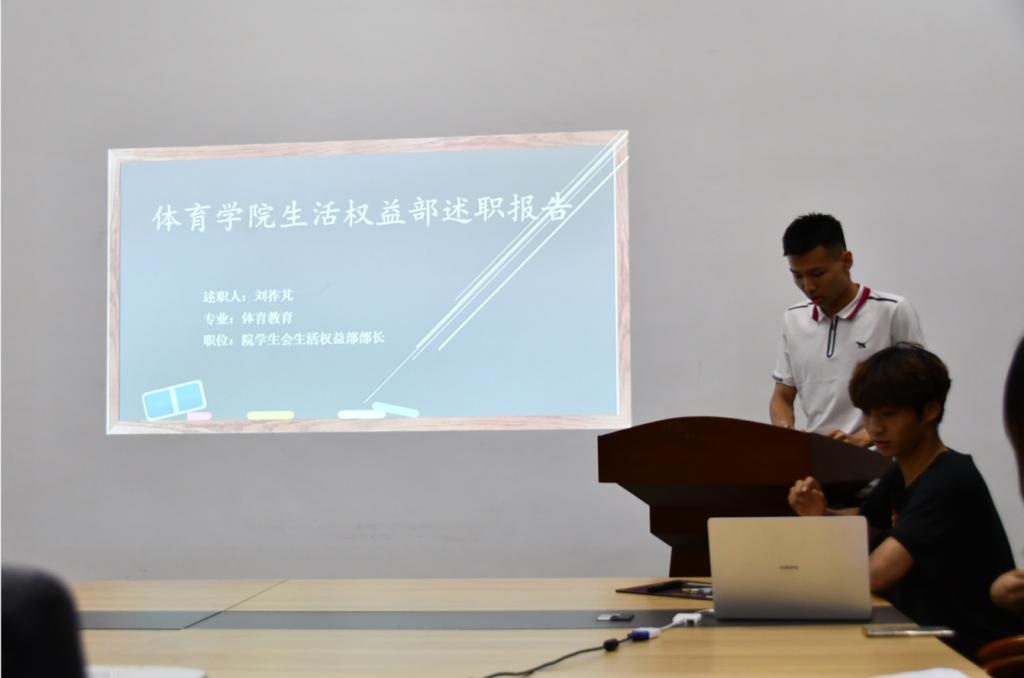 述职会上,述职人员围绕履行岗位职责情况、在工作中取得的主要成绩、存在的主要问题以及今后的改进措施等方面展开述职。各部门通过述职,交流了工作经验,达到资源共享。评议人员秉承公平公正的原则,根据以上同学的述职并结合日常工作表现对其进行评议。