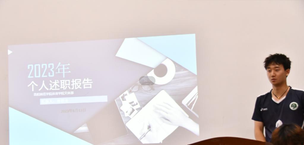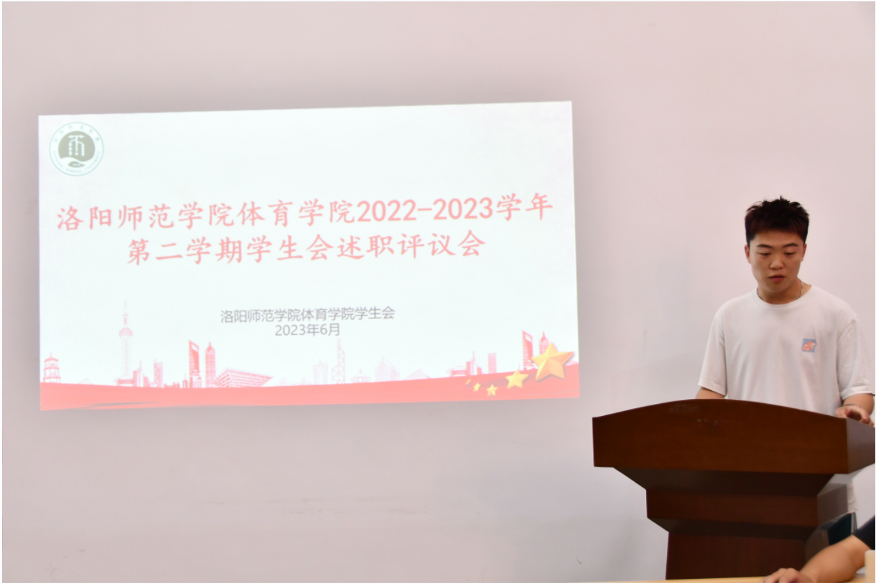 为进一步加强我院学生会自身建设,提高学生会干部队伍的整体素质,6月13日,体育学院在109会议室举行2022-2023年第二学期学生会述职评议会。体育学院团委书记胡唯唯、就业办副主任陶金、辅导员郝泽华、申军辉以及各专业各年级21名学生代表参加了本次会议。