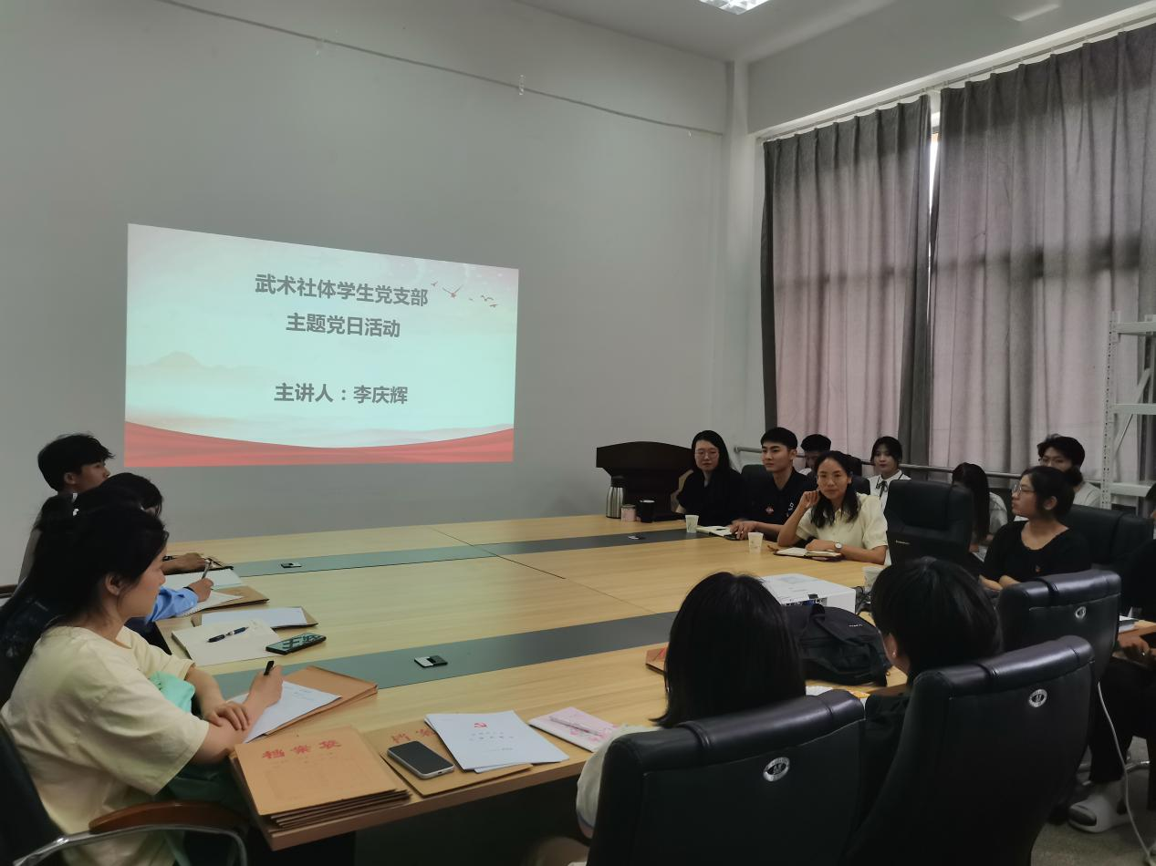 6月16日中午,我院武术社体学生党支部在B109举行深入学习贯彻党的二十大精神主题党日活动,校党委组织部副部长李庆辉莅临指导,武术社体学生党支部全体人员参加。本次党日活动立足学习二十大精神,以党史学习为主旨,以深入学习和感悟中国共产党的精神谱系为根本,多形式多维度重温红色记忆、坚守奋斗初心,赓续精神血脉、汲取奋进力量。