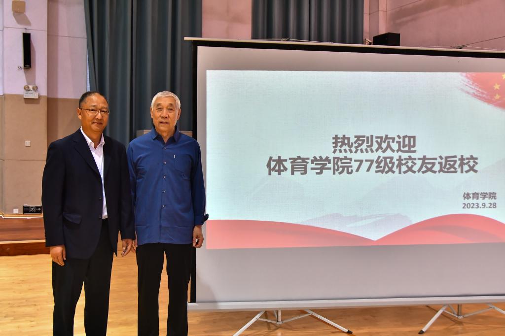 光阴荏苒风华在,学子情深返校园。9月28日上午10点,体育学院在演播厅举行聚会,隆重欢迎77级校友返校。副校长冯恒强、校友办公室负责人、体育学院班子成员、师生代表200余人共同参加。会议由学院党委副书记翟强主持。