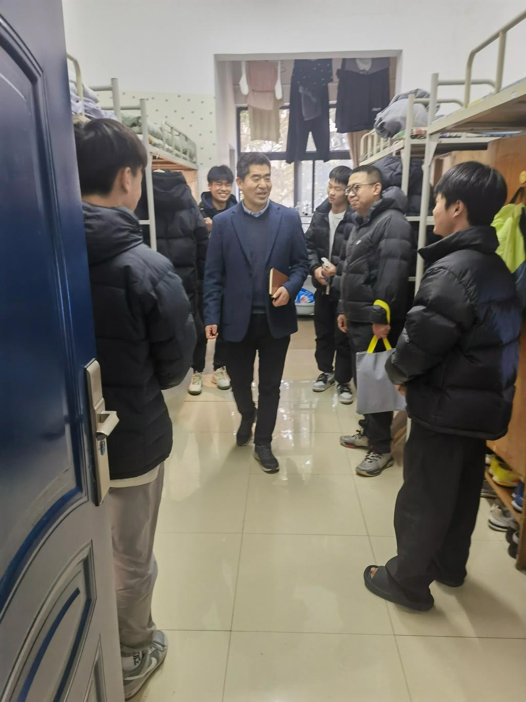 为贯彻落实学校安全工作专题会议精神,进一步加强校园安全工作,12月8号上午,冯恒强副校长深入体育学院、鸿都书院一号院调研,体育学院全体班子成员、辅导员随行参加调研检查。