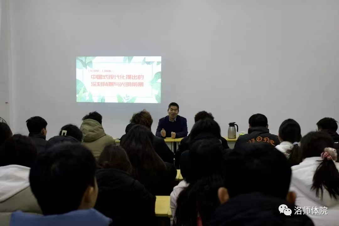 为全面学习、全面把握、全面落实党的二十大精神,不断深化对党的二十大精神的学思践悟,11月30日下午,冯恒强副校长在鸿都楼B111室为体育学院学生代表讲授了题为“中国式现代化提出的深刻背景与光明前景”的思政课。学院团委、学生会、党务办等60余名学生干部以及青马班学员聆听了报告。