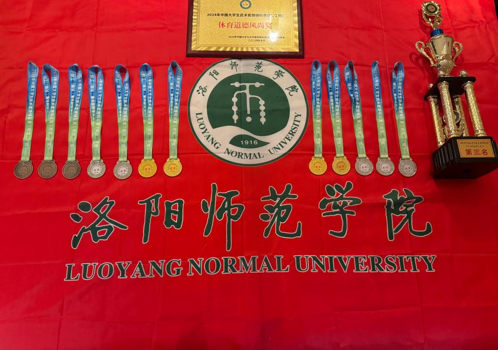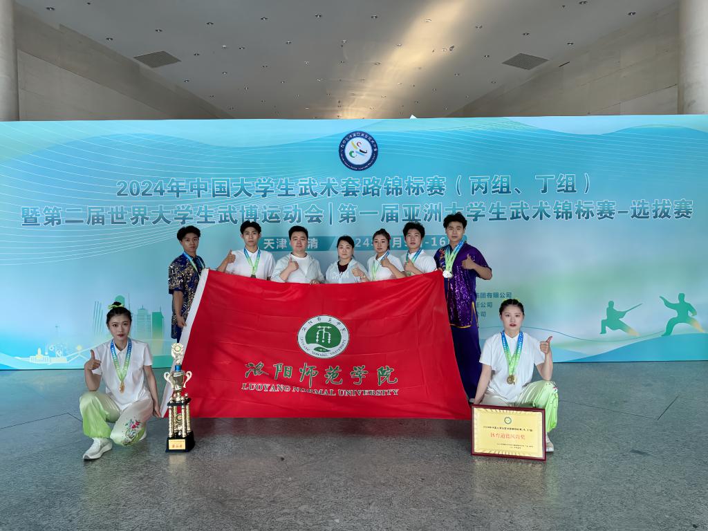 2024年中国大学生武术套路锦标赛(丙组、丁组)于5月9号至5月16号在天津市武清区举行,来自清华大学、北京体育大学等100所学校1049名运动员参加了比赛。我院武术套路代表队李笑笑、刘平平、葛舒畅、毛飞洋、龙星宇、李家乐、王东旭7名学生获得四枚金牌、五枚银牌、三枚铜牌,同时,获得男子丙B组团体总分第三名,女子丙A组团体总分第七名的历史最好成绩,武术套路代表队被评为体育道德风尚奖代表队。