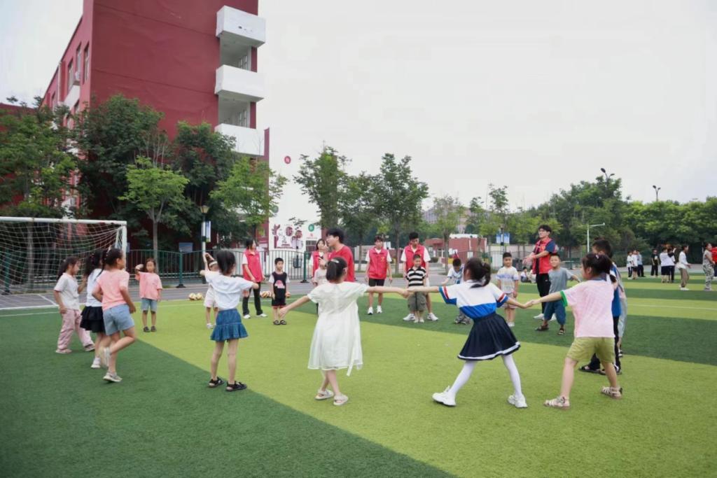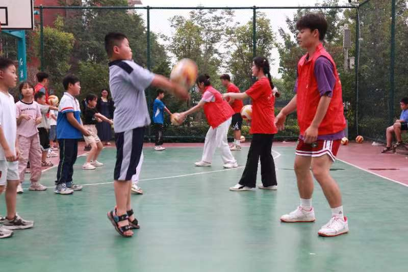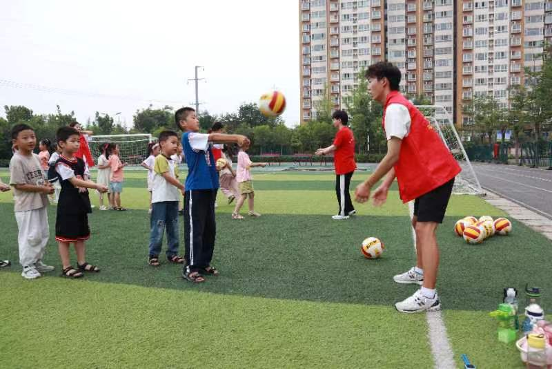 7月9日,体育学院“以体育心·‘益’起前行”益行运动社会实践队来到洛阳市永泰小学进行实践教学活动。为帮助学生提升身体素质,培养运动技能和团队协作精神,团队针对不同年级的小学生,进行排球课程教学。