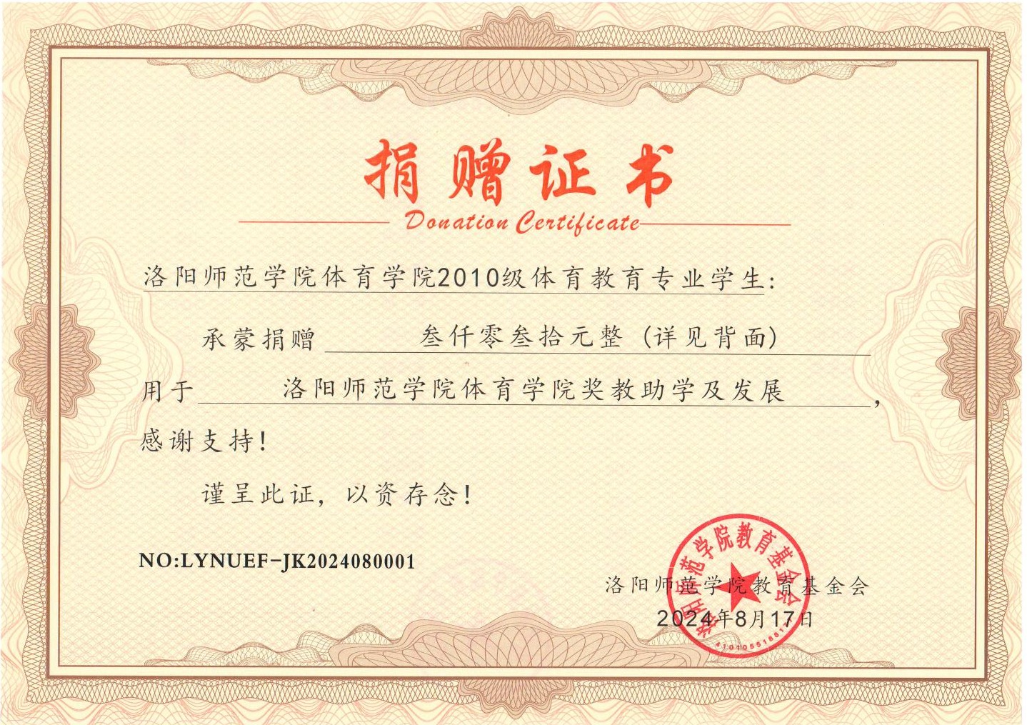 校友表达了对学院培养的感激之情,以及对学院未来发展的美好祝愿。校友表示,这次聚会既是回顾过去,也是展望未来,希望同学们在短暂的相聚时光里,共话当年事,共叙同窗情;在分开时,怀揣热爱与激情,在各自的领域里继续发光发热。随后,校友向母校赠送了纪念帆船,并向校友教育基金会捐款3030元,校友工作办公室副主任杜胜利向校友代表颁发了捐款证书。