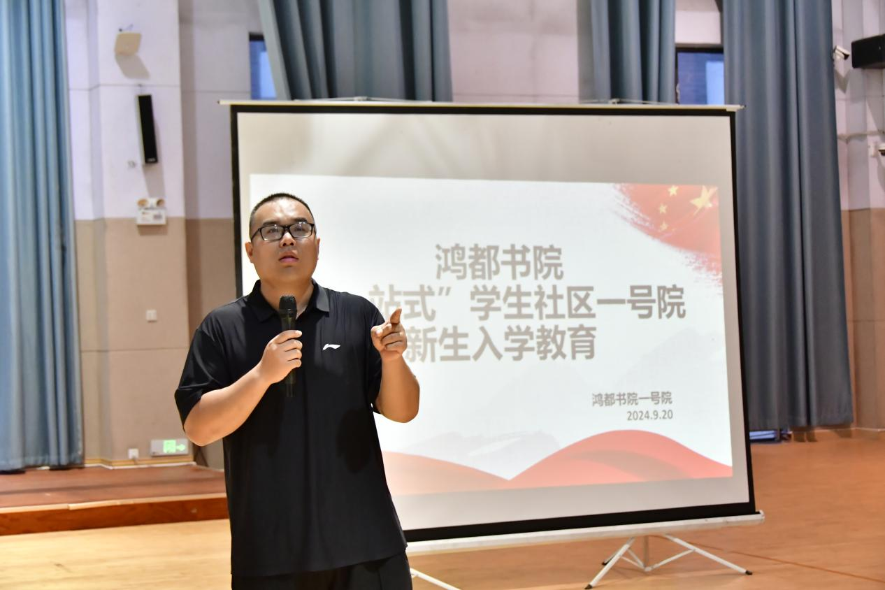 为助力新生快速融入大学生活,明确其成长方向,促进全面发展。9月20日下午,鸿都书院“一站式”学生社区一号院于体育馆演播厅举办了新生入学教育大会。辅导员苗雅博老师在会上为新生进行校规校纪解读。