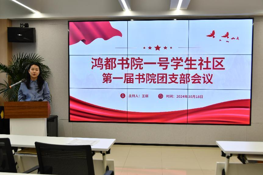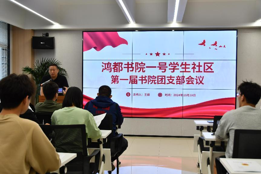 为增强团组织的凝聚力,为学生们提供了一个良好的学习和成长平台。鸿都书院“一站式”学生社区一号院于2024年10月18日鸿都学堂召开了第一届团支部大会。鸿都书院一号院党委副书记翟强、李海瑞,全体辅导员,各团支部书记及团委干部共60余人参加此次会议,会议由团委负责老师王丽主持召开。