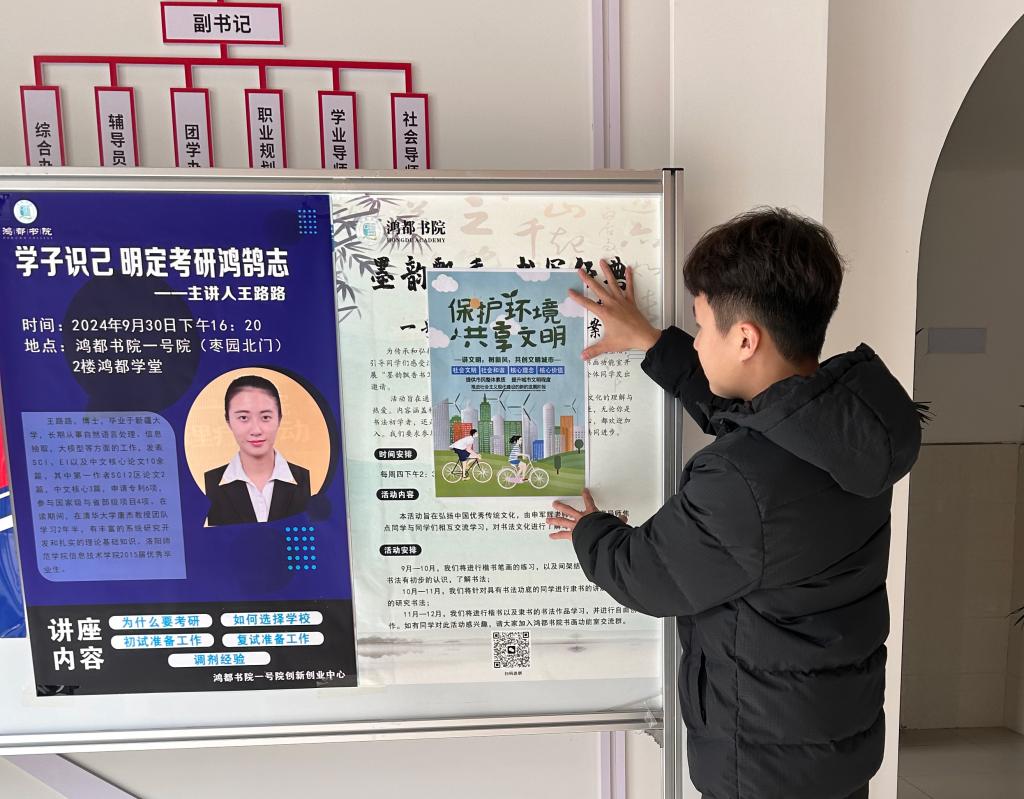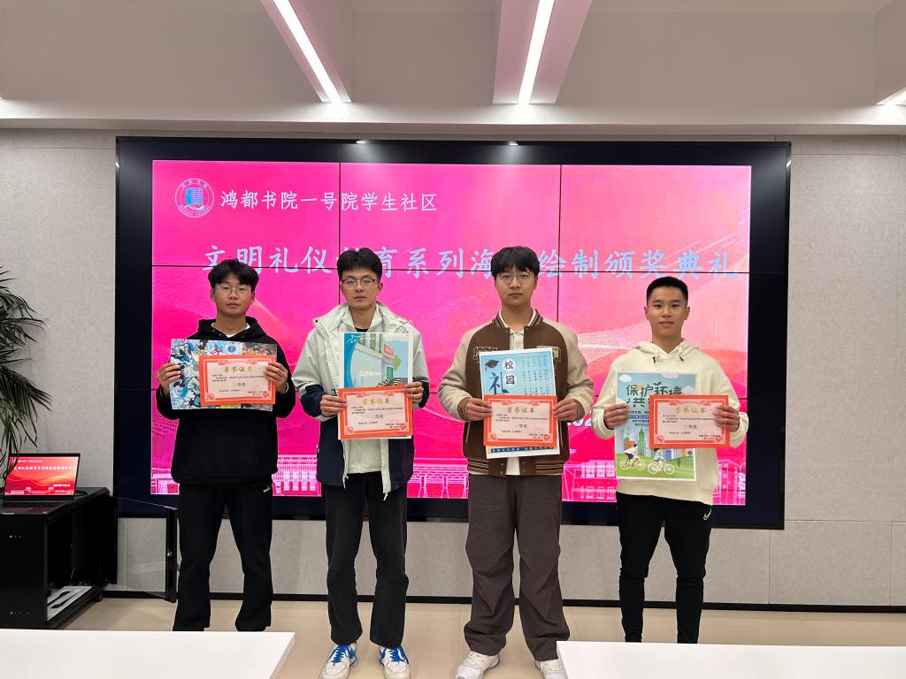 11月4日至8日,鸿都书院“一站式”学生社区一号院持续开展文明礼仪主题教育系列活动,具体活动内容包括“文明礼仪伴我行”海报设计大赛、“校园文明纠察”活动。