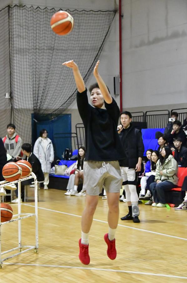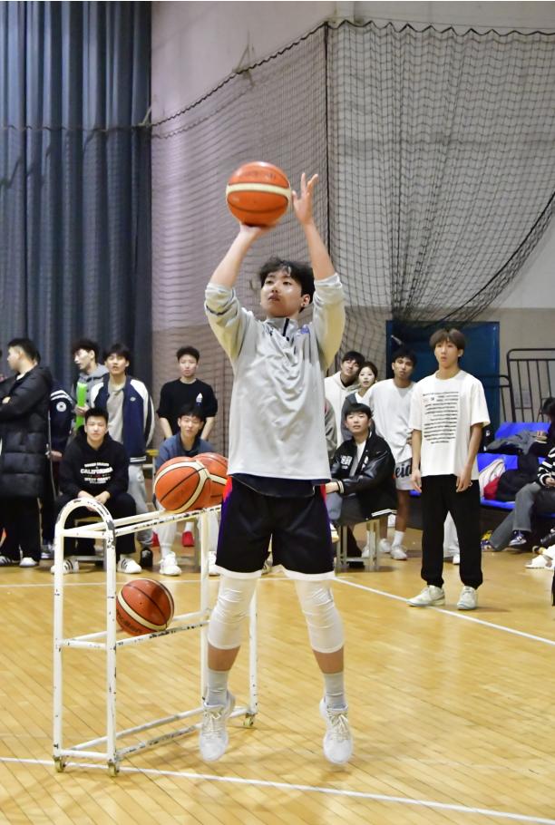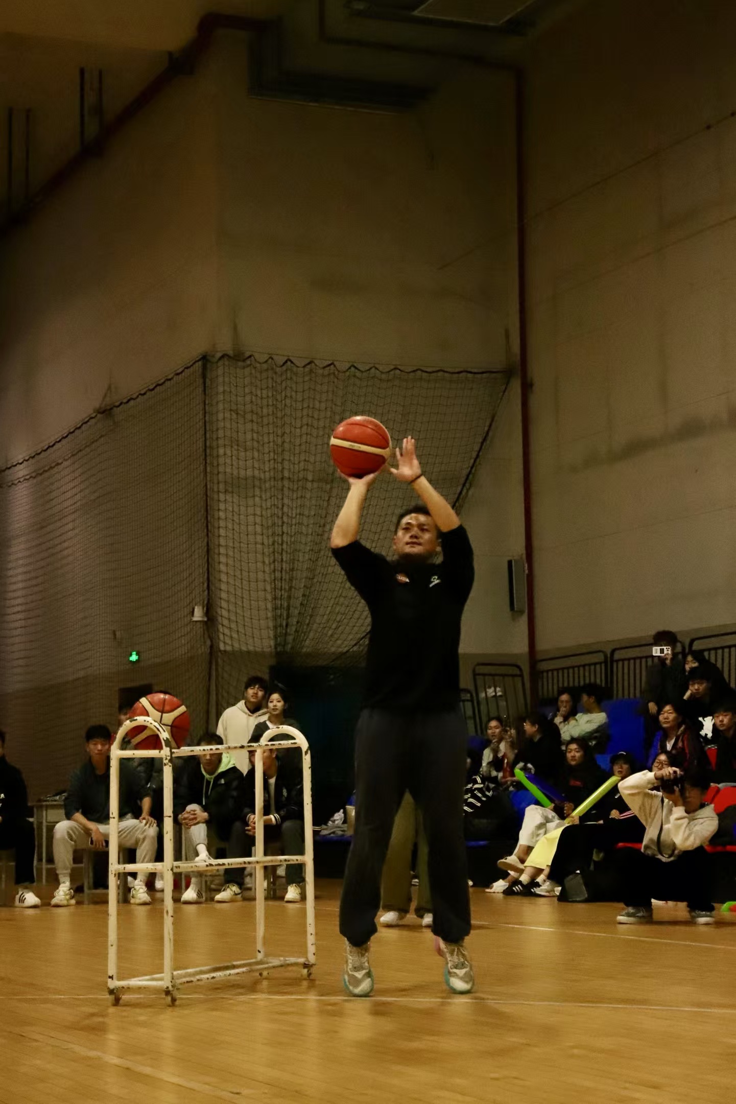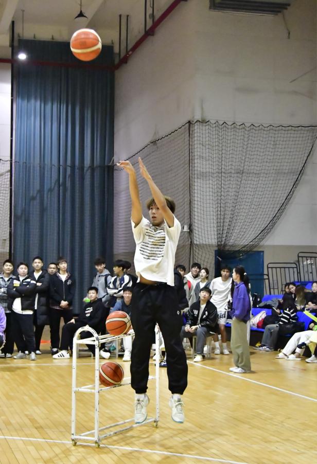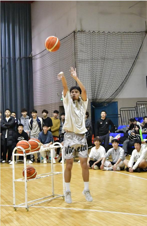 本届三分球大赛共有11名同学参加,分别来自各年级各专业,赛事共设置3个投篮点,每个点5个球,并添加了中场投篮点的比拼,参赛选手需要在1分钟的时间内完成所有投篮。这不仅仅是对技术的考验,更是对心态与意志的磨砺。比赛过程中每一次投球都扣人心弦。同学们或冷静分析,寻找最佳出手时机;或果断出手,展现超凡自信。经过精彩比拼,来自24级中外体育教育专业的李宇昂同学夺得今年的三分球大赛冠军。