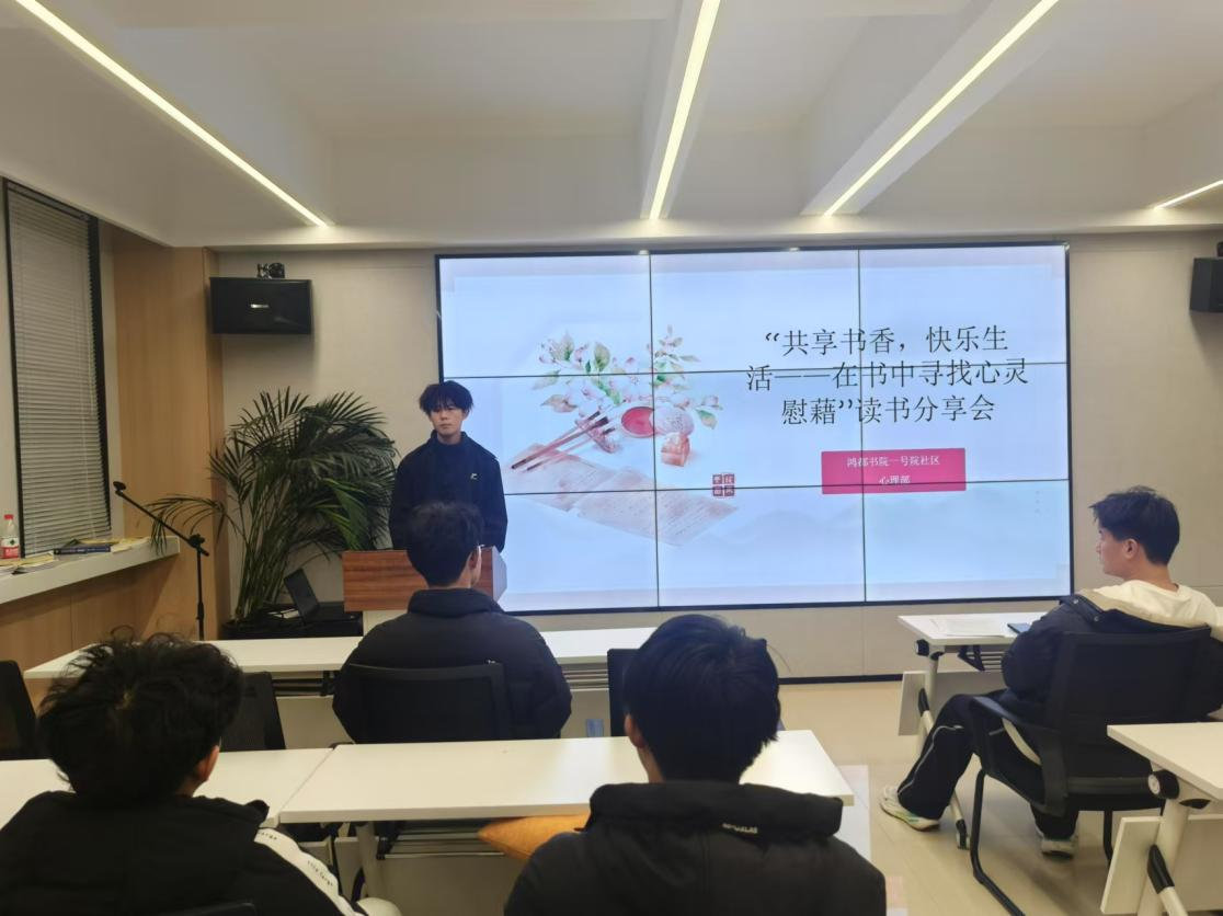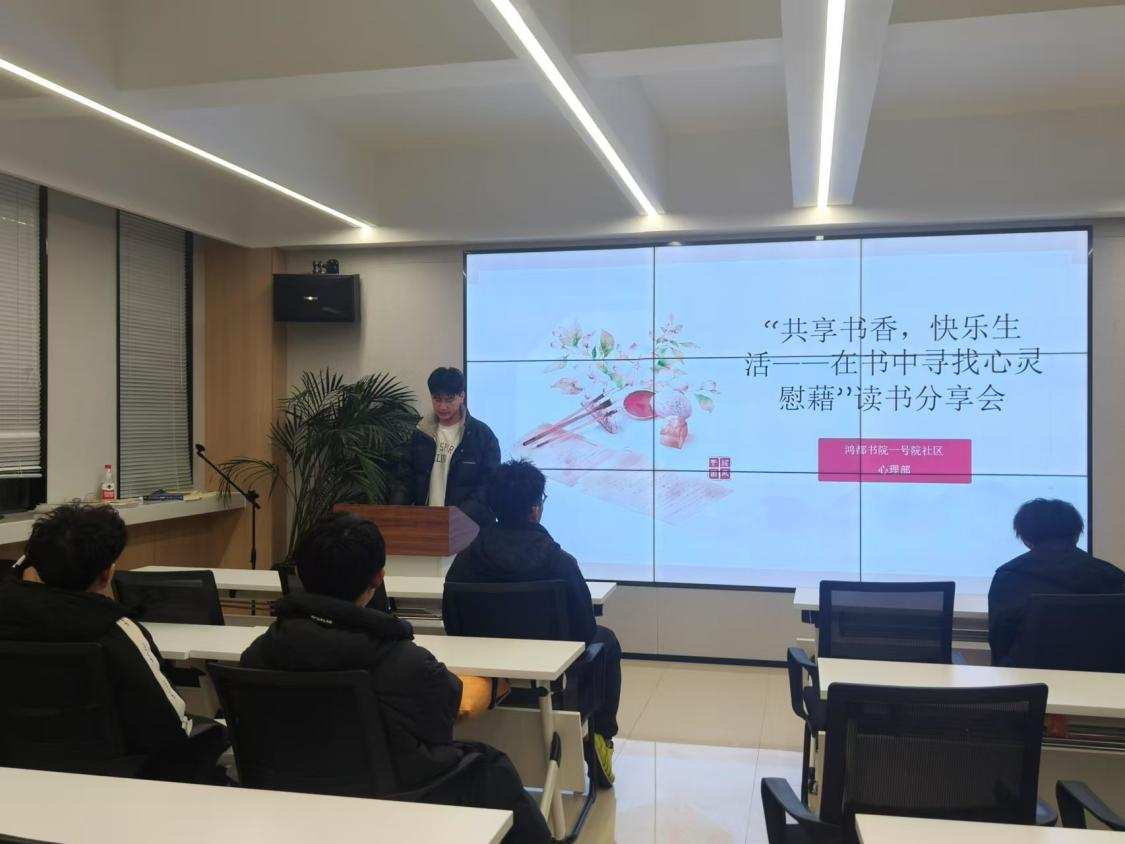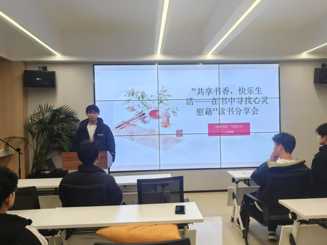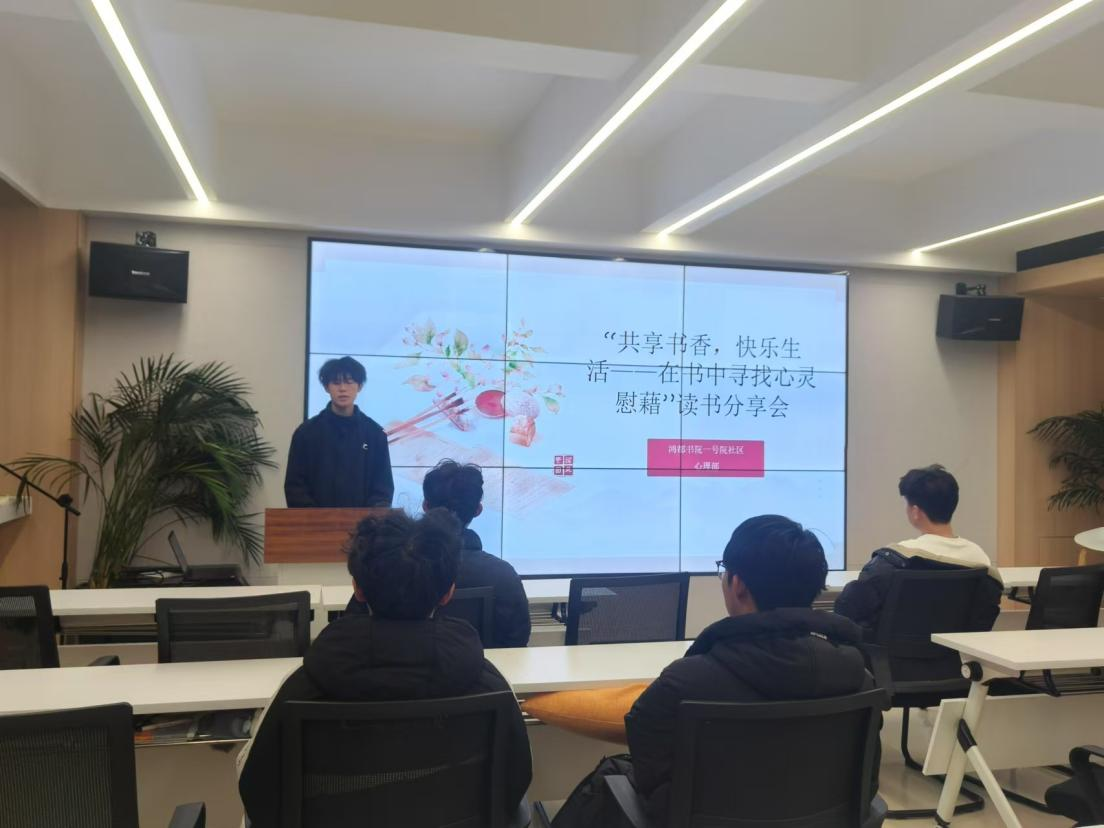 为营造浓厚的文化氛围,激发大家对阅读的兴趣,增进彼此之间的交流与理解。12月9日,鸿都书院一号学生社区心理部成功举办“共享书香,快乐生活”读书分享会。此次活动旨在通过分享个人阅读心得,引导大家深入阅读,拓宽视野,同时也为书友们提供一个展示自我、结识朋友的平台。通过面对面的分享与讨论,书友们不仅交流了书中的内容,还在思想上碰撞出了火花,增进了彼此的理解。活动特别注重为每个人提供表达自我的机会,无论是上台分享还是台下提问,大家都勇敢发声,积极分享。