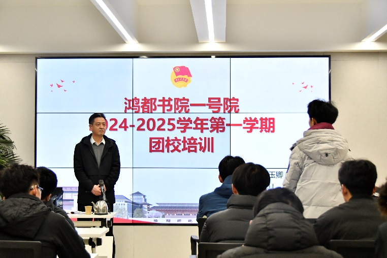 为深入理解中国式现代化的内涵、特色以及青年在这一伟大进程中的责任与担当,12月9日晚,我院在鸿都学堂开展“在中国式现代化中挺膺担当”专题培训,本次培训由鸿都书院一号学生社区党委书记尚玉卿主讲,全体团学干部及青马班学员参加。