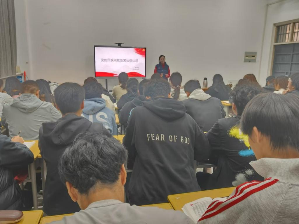 10月29日晚,体育学院运动训练学生一支部书记赵慧玲老师以党的民族宗教政策法律法规为主题,以习近平新时代中国特色共产党人的初心和使命出发,向同学们阐释了我国的民族特色,赵老师号召我们积极参加党日活动,积极引导宗教与社会主义社会相适应。