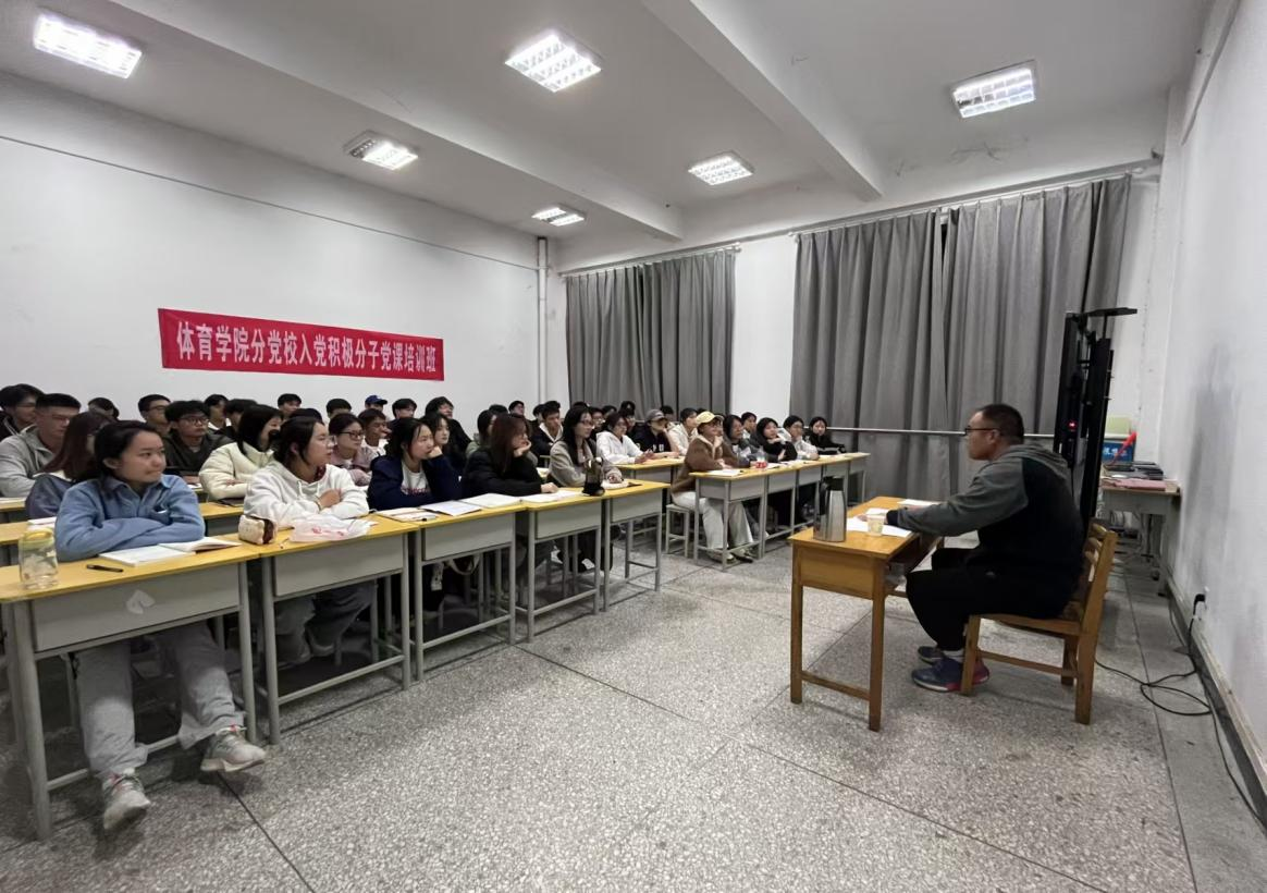 10月26日上午,积极分子党课培训班在体育学院B111教室开讲。体育学院体育教育学生三支部书记申军辉讲述了学习党章党规是中国共产党党员的基本义务,也是提升自身政治素养和党性修养的重要途径。通过学习党章党规,同学们更好地理解党的要求,明确自己的责任和使命,从而在实践中争做一名合格的共产党员。