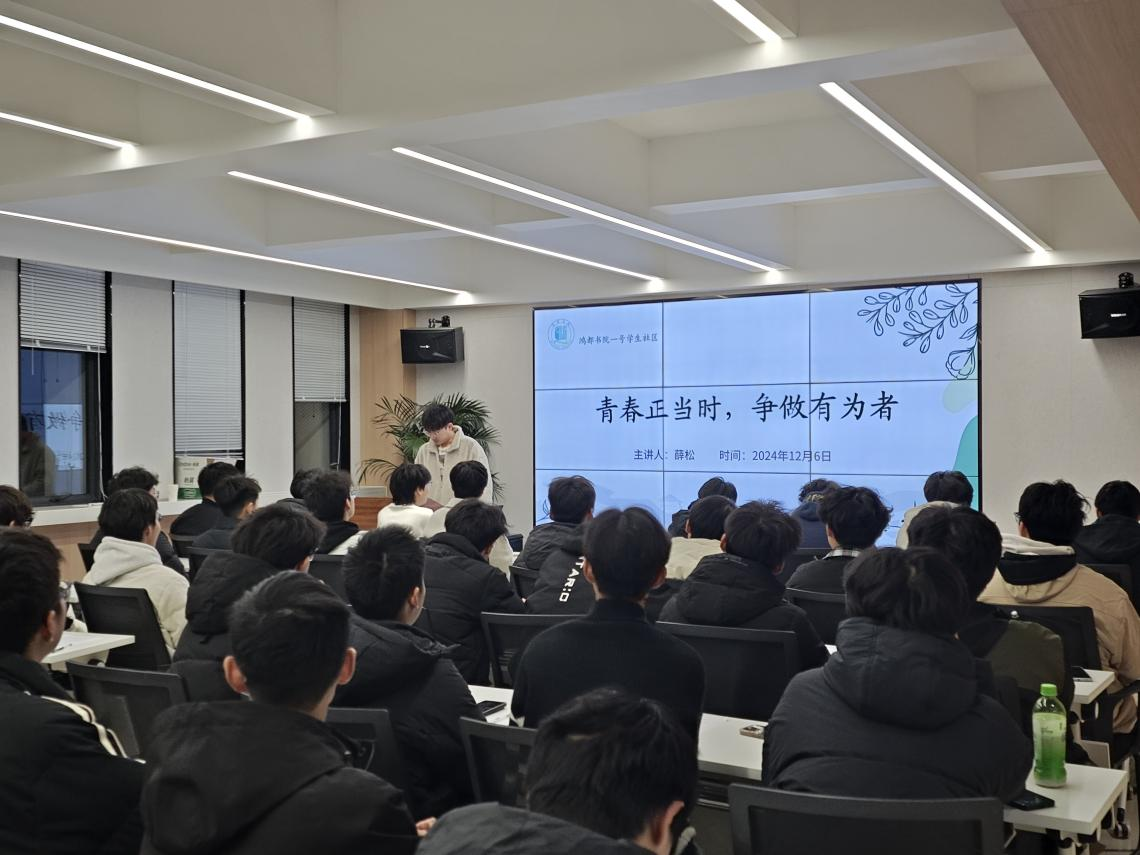 12月6日晚,育人导师薛松以“青春正当时,争做有为者”为主题作专题培训,在培训过程中,他提及要珍惜青春时光,努力学习,提升自身能力,为实现中华民族伟大复兴的中国梦贡献自己的力量。