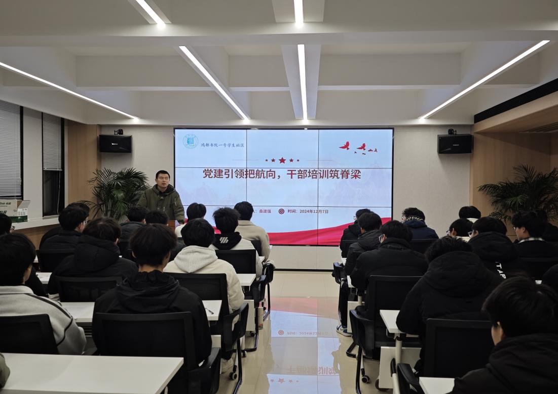 12月7日晚,综合管理办公室负责人桑建强以“党建引领把航向,干部培训筑脊梁”为主题作专题培训,带领同学们深入学习了党的基本理论、基本路线、基本纲领,进一步明确了新时代青年的历史使命。