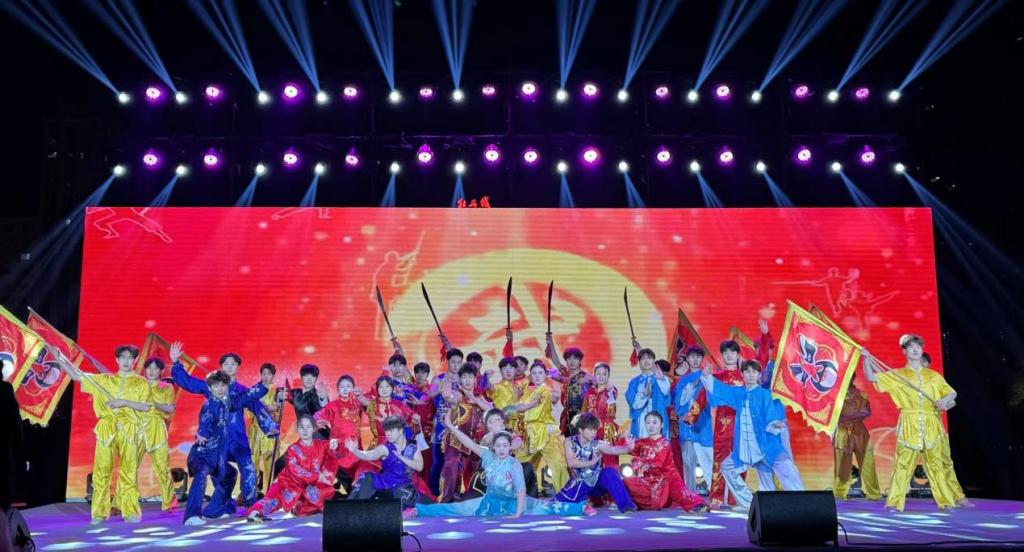 洛阳师范学院武术队受邀参加此次汇演,来自体育学院民传专业的学生带来了气势恢宏的武术表演《武韵华章》。表演中,数十名武术健儿精神抖擞,意气风发,先后展示了太极拳、小旗、南拳、大刀、单鞭、九节鞭、长刀、扑刀、南刀、长拳等传统武术项目。他们动作整齐划一,招式刚劲有力,将中华武术的博大精深和时代风采展现得淋漓尽致,赢得了现场观众的阵阵掌声和喝彩声。