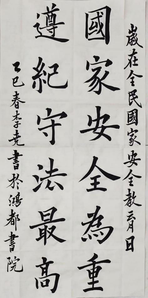 社区组织开展“总体国家安全观”主题书法活动。同学们以笔为媒,用优美字迹深刻诠释对国家安全的理解,展现青年学子对国家利益至上的坚定信念。活动营造了“维护国家安全,人人有责”的良好氛围,彰显新时代青年勇担维护国家安全的责任与使命。