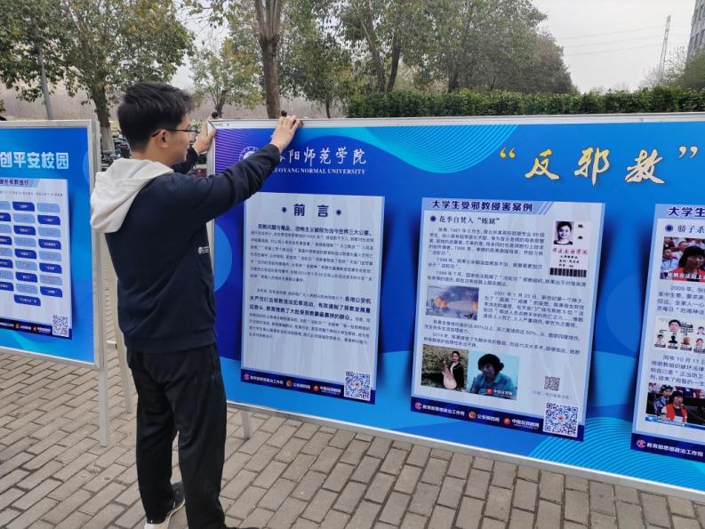 在社区大厅内外摆放反邪教知识宣传展板,不断深入推进反邪教警示教育,切实提高学生识邪、辨邪、防邪、拒邪的能力,倡导崇尚科学、关爱家庭、珍惜生命的良好社会风尚。展览期间,学生仔细观看展板上的图片和文字,深入了解了邪教的本质和危害,增强了识别邪教、防范邪教的意识和能力。