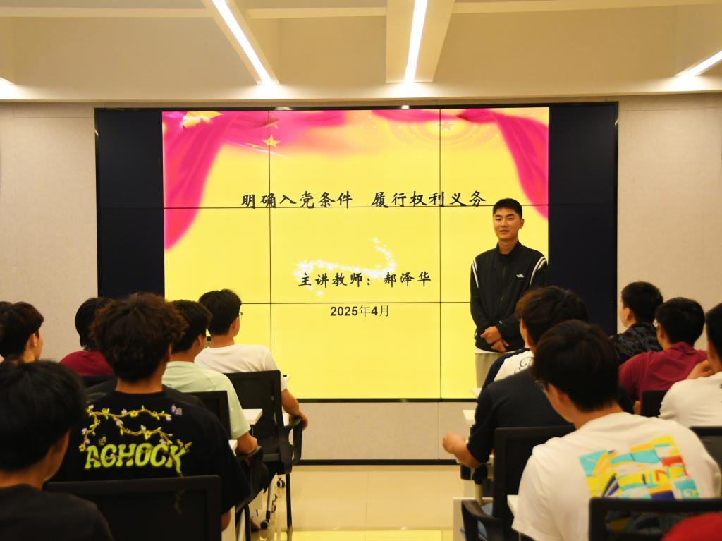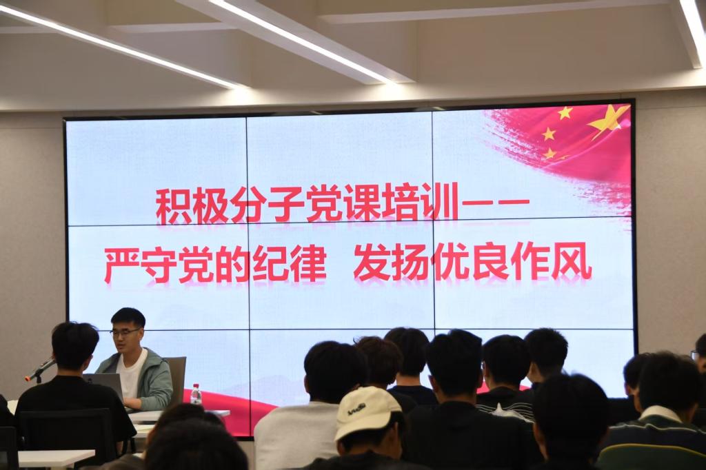 薛生康老师以“严守党的纪律 发扬优良作风” 为主题开展党课培训。通过云南省玉溪市委原书记罗应光违纪案例开展警示教育,强调严守党纪是党员的基本准则;李婧怡老师系统讲解入党流程及材料规范,通过实务指导帮助同学们明确组织要求;钱富强老师从政治品德、个人修养、作用发挥三方面,阐释新时代合格党员的标准。