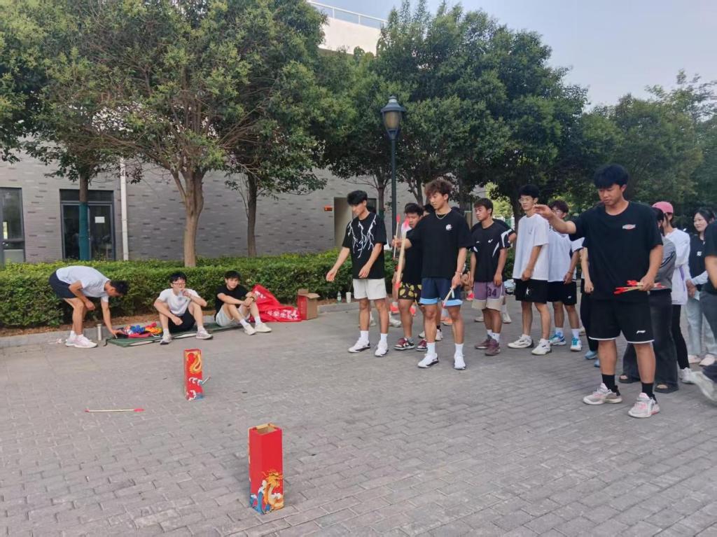 活动现场,气氛热烈而紧张,同学们都跃跃欲试。在主持人讲解过游戏规则后,同学们现场自行组队,分成了六个小组来角逐比赛的胜利。在进行第一个游戏“众志投壶”时,每个同学都屏息凝神,专注于游戏,提升了同学们在高压环境下稳定情绪以及团队协作的能力;第二个游戏为“确认过眼神”,各队员在听到主持人发出的指令后要看向自己的队友但不能互相对视,游戏过程乐趣横生,拉进了同学之间的距离;第三个游戏是一个考验选手们配合和力量的游戏——“东南西北跑”,参赛同学通过精密配合向不同方向跑,将网球传到了队员手中;最后一个游戏为“扔沙包”,同学们需要通过配合躲避投来的沙包,游戏过程中同学们各个身手敏捷,在与队友的配合中取得了胜利。四轮游戏过后,根据每个队伍的成绩,以及队员之间的配合,最终评选出了三支优胜队伍。