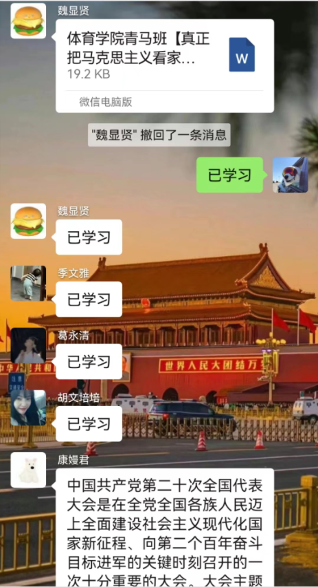 (1)以理论学习滋养初心,增强青年学生使命感。各团支部围绕“二十大精神”开展理论学习。2022级体育教育4班团支部邀请校青年讲师团成员深入团支部开展理论微宣讲,青年讲师团成员周宇星为支部团员讲述了为什么走中国式现代化道路才能推进中华民族伟大复兴;彭晓政为青年团员讲述了马克思主义为什么从未过时。通过宣讲,同学们对党的二十大精神有了进一步领会,纷纷表示,作为成长在新时代的青年,要勇担时代重任,不负时代、不负韶华。2021级体育教育7班团支部组建“‘小红花’理论学习互助组”。团支部党员干部、积极分子作为组长,组建学习小组,每天在互助群中发布理论学习打卡任务,小组与小组之间定期组织理论知识竞答赛,检验互助学习成效,通过“先进”带动“后进”的方式,提升全体学生的理论素养。