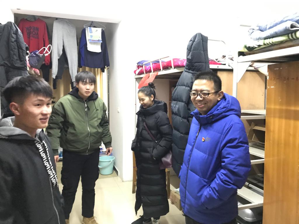 12月24日晚,在我院党委副书记翟强的带领下,全体辅导员和班主任深入宿舍看望学生。