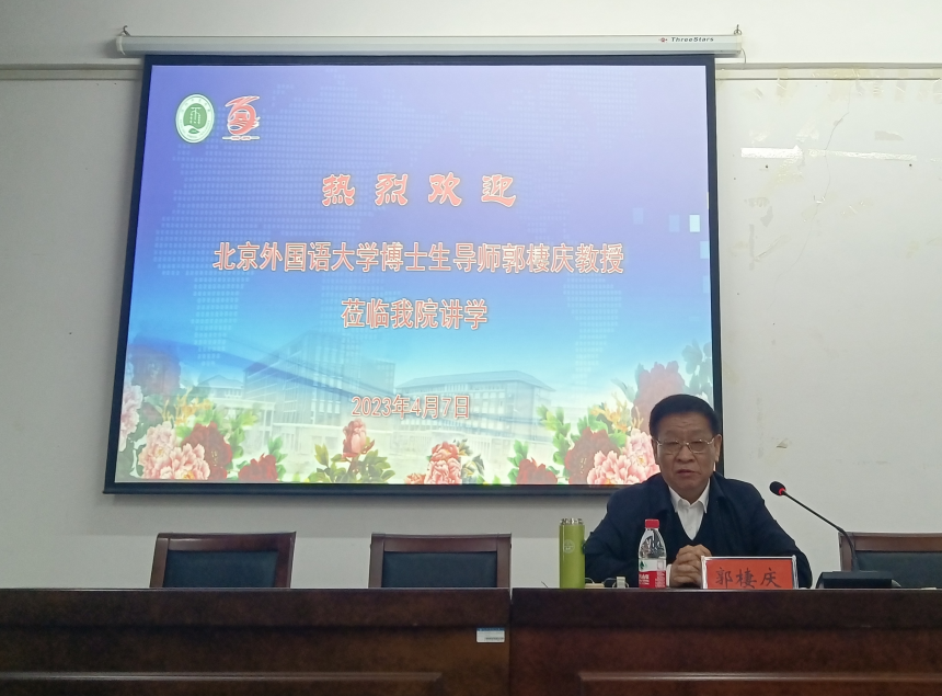 4月7日上午,我院邀请北京外国语大学博士生导师郭棲庆教授在302会议室做“掌握学习规律,提高外语教与学质量----以英语学习为例”讲座,讲座由贺剑瑜副院长主持,我院80余名师生参加了此次讲座。