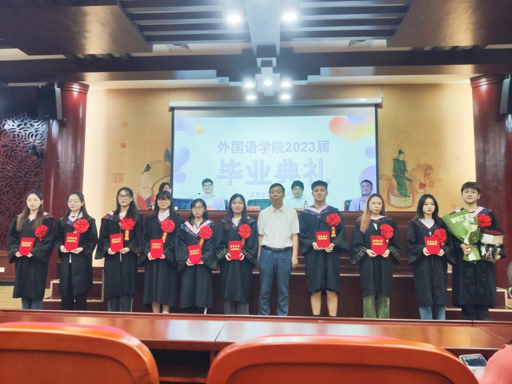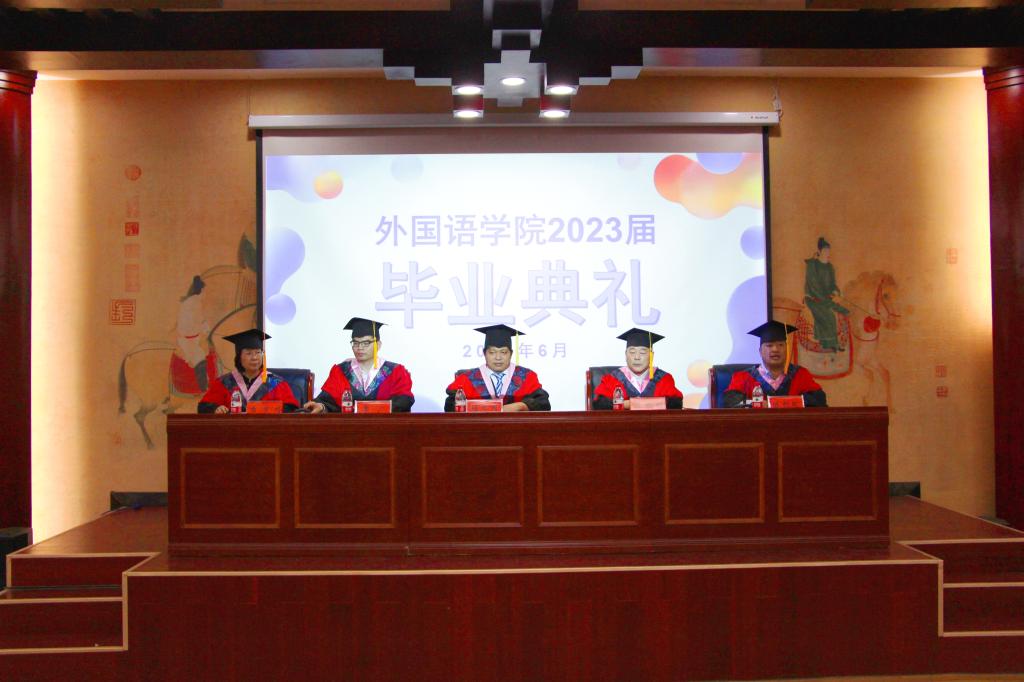 陆志国代表学院领导和教职员工向2023届全体毕业生圆满完成学业,即将顺利踏上新的征程表示热烈祝贺,并向为学生成长付出辛勤汗水的教职工和家长们致以崇高的敬意和衷心的感谢。他对毕业生提出三点期望:一是希望全体毕业生做一个具有家国情怀、对国家有用的人。同学们要利用外语讲好中国故事,传播好中国声音。二是希望全体毕业生做一个热爱生活、对生活不断感恩的人。大家永怀感恩之心,感恩孜孜不倦教导自己的所有老师,感恩陪伴四年的同学们。三是希望全体毕业生做一个追求卓越、对奋斗目标永不放弃的人。大家要胸怀梦想,把个人理想与国家命运相结合,在新时代征程中扬帆起航。