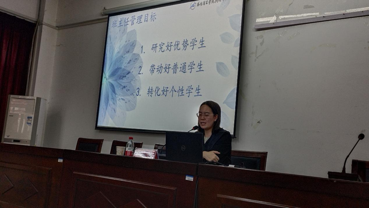 讲座中,郝校长首先介绍了洛阳理工学院附属高级中学的概况,勉励同学们努力夯实专业素养,欢迎同学们毕业后到该校就职任教,为自己的职业成长找到好的发展平台。接下来,郝校长分享了她个人专业成长的经历和心得体会,鼓励同学们加强专业理论学习,积极为自己的专业成长做出科学合理的计划,主动寻找发展机遇,敢于吃苦,笃定前行,不断自我雕琢。