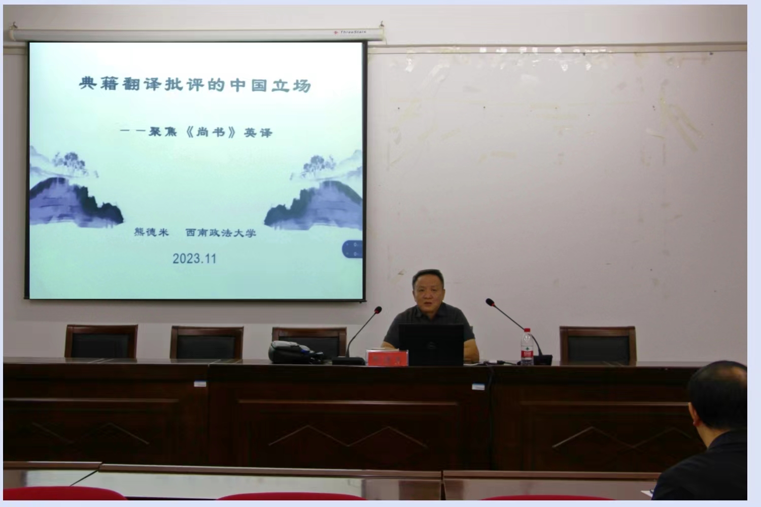 11月3日上午,我院邀请西南政法大学熊德米教授在302会议室做题为“典籍翻译批评的中国立场 ”的学术讲座,讲座由贺剑瑜副院长主持,我院70余名师生参加了此次讲座。