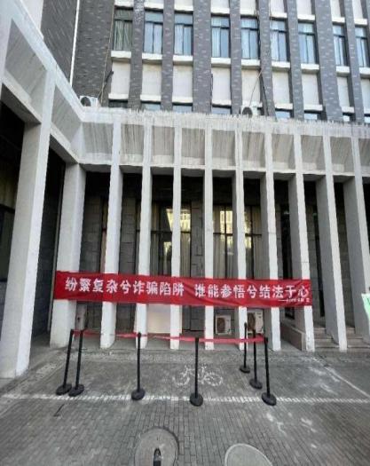 学院辅导员老师进入学生宿舍,强调电信诈骗的复杂性和反诈形势的紧迫性,预告系列反诈宣传教育活动;在学院悬挂反诈主题横幅、滚动播放反诈宣传标语,在教室黑板书写反诈宣传标语,在宿舍座位显眼处张贴“转账超过300元,务必求证身边人”反诈提示语,全面营造反诈氛围。