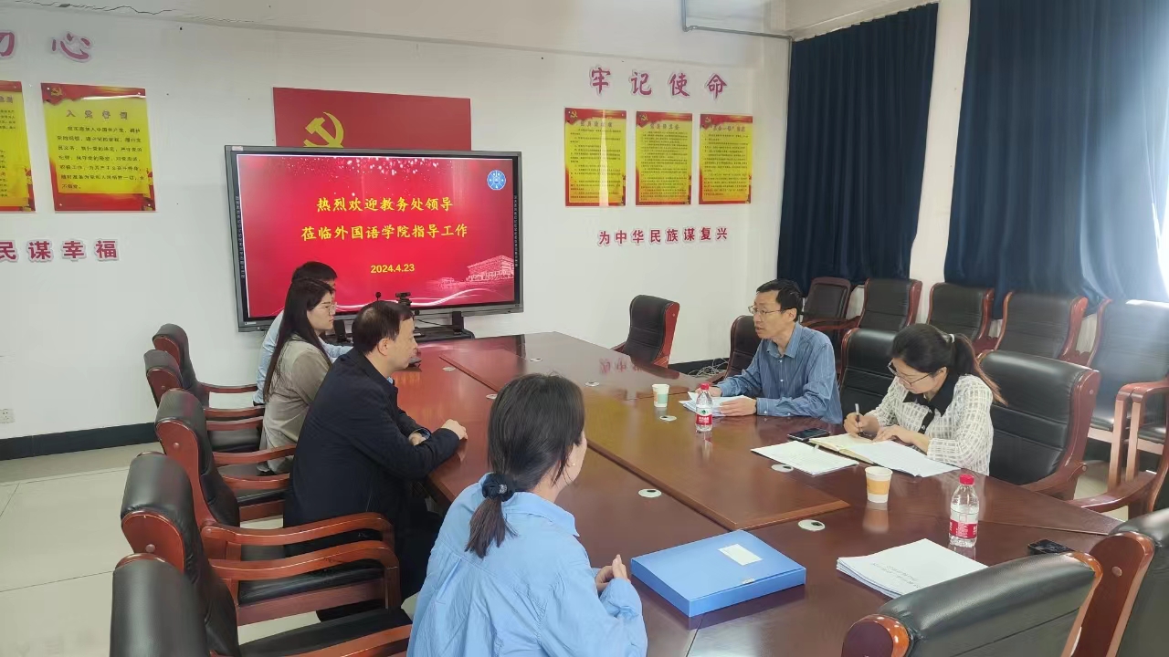 为迎接教育部本科教育教学审核评估工作,4月23日上午,教务处副处长赵虹元一行莅临外国语学院504会议室,开展劳动教育实践教学材料检查督查工作。外国语学院副院长刘启成及相关教务人员出席检查活动。