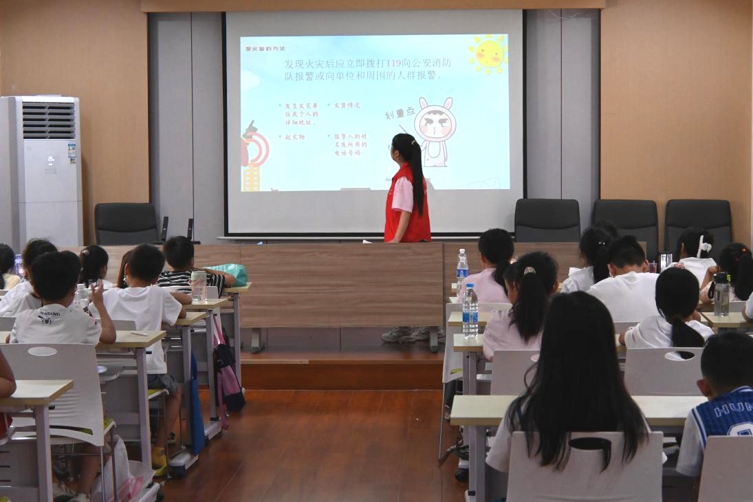 炎炎夏季,“溺水”是青少年生命安全的“第一杀手”。在“7·25”世界预防溺水日,实践队结合暑期省内汛期多发的情况,利用多媒体播放溺水救助案例,教授学生“六不两会”防溺水口诀,再通过知识问答的形式有效强化记忆、提升防范意识;队员们还演示了应急救护的操作步骤和急救技能,通过现场演练,让学生们学会在遇到突发情况时如何有效拨打急救电话并采取力所能及的急救措施。在防火、用电、交通安全课堂上,实践队员主要采用你画我猜的方式让大家牢记安全标识,并详细讲解不同灭火器的正确使用方法,以及遇到火灾、漏电、交通事故后的急救措施,不断提升大家的急救、自救能力。在防电信诈骗课堂上,实践队员具体讲解了常见电信网络诈骗的形式和手段,鼓励学生积极思考、灵活运用防诈小妙招;课堂上,实践队员通过积分奖励的方式进行教学活动,达到了良好的宣教效果。