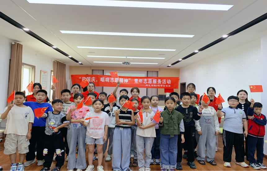 双院积极响应“迎国庆,唱响志愿精神”青年志愿服务活动,组织青年志愿者深入新源嘉苑社区,为社区青少年带来一堂生动活泼的爱国主义教育课。志愿者们在课堂上带领青少年回顾了新中国成立75年来的伟大成就,通过知识竞猜的游戏,寓教于乐,并教授了孩子们如何规范行少先队礼。最后,全场共同表演《歌唱祖国》手势舞,向祖国母亲的生日献上自己真挚的祝福。