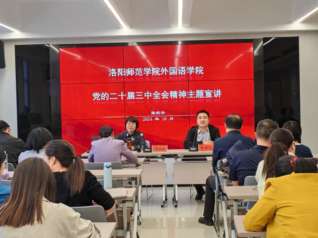 10月10日下午,外国语学院举办学习贯彻党的二十届三中全会精神宣讲报告会,校党委宣讲团成员、校纪委委员、正处级组织员张姣云同志作宣讲报告,学院全体教职工参加。
