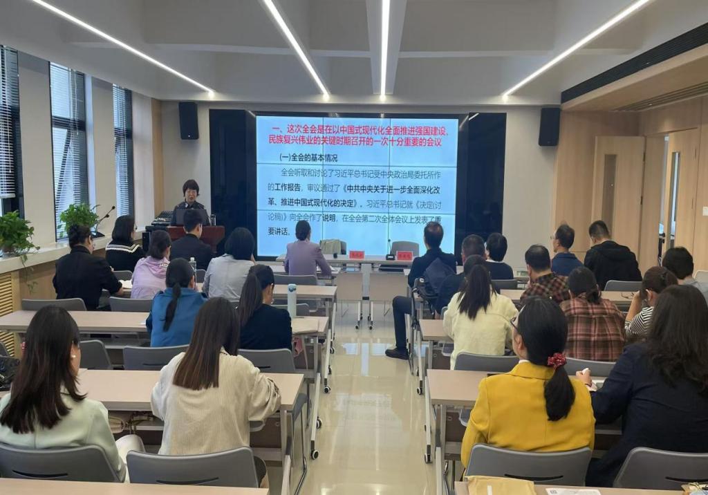 张姣云围绕党的二十届三中全会的重大意义、深入学习领会习近平总书记在党的二十届三中全会上的重要讲话精神、全面准确理解《决定》提出的进一步全面深化改革的重大举措、全力以赴抓好全会精神贯彻落实等四个方面内容,对全会精神进行了深入系统分析、解读,并结合学校发展实际,就抓好全会精神贯彻落实、务求取得发展实效提供了有益指导。报告主题鲜明、重点突出、内容丰富,理论结合实际,针对性强,为党员干部、教职员工深入学习贯彻党的二十届三中全会精神奠定了坚实基础。