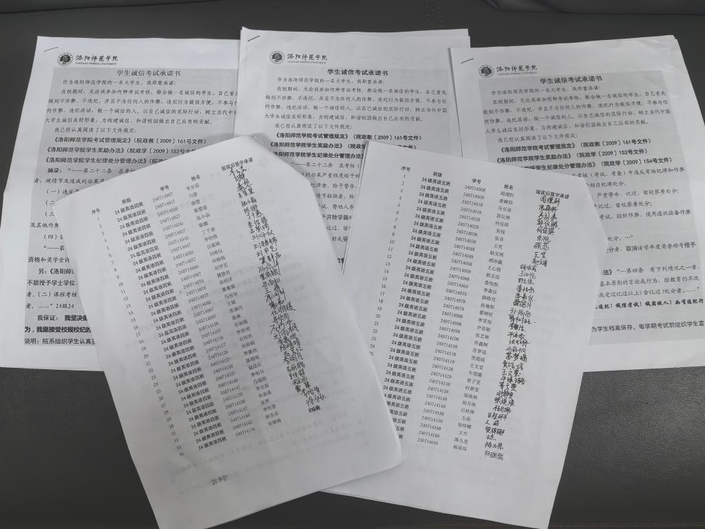 学院通过诚信考试主题班会、签订诚信考试承诺书、诚信考试主题展板等多种形式,帮助全体同学进一步认识考试作弊和违规违纪认定办法和严重危害,端正学习态度,做好考前充分复习备考,严格遵守考场纪律